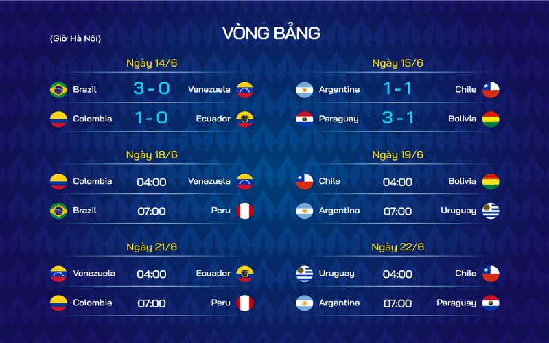 Điểm đặc biệt của Copa America là số trận vòng bảng không nhiều, nên chỉ một sai lầm nhỏ cũng có thể khiến đội bóng lớn bị loại sớm. Điều này tạo nên tính khốc liệt rất riêng cho giải đấu.